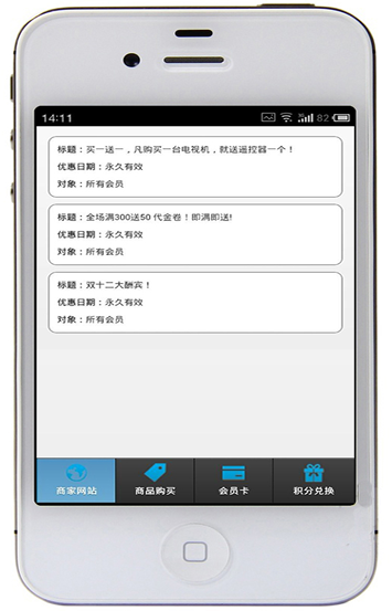 所有在后臺(tái)添加的優(yōu)惠消息,將會(huì)顯示在列表中!