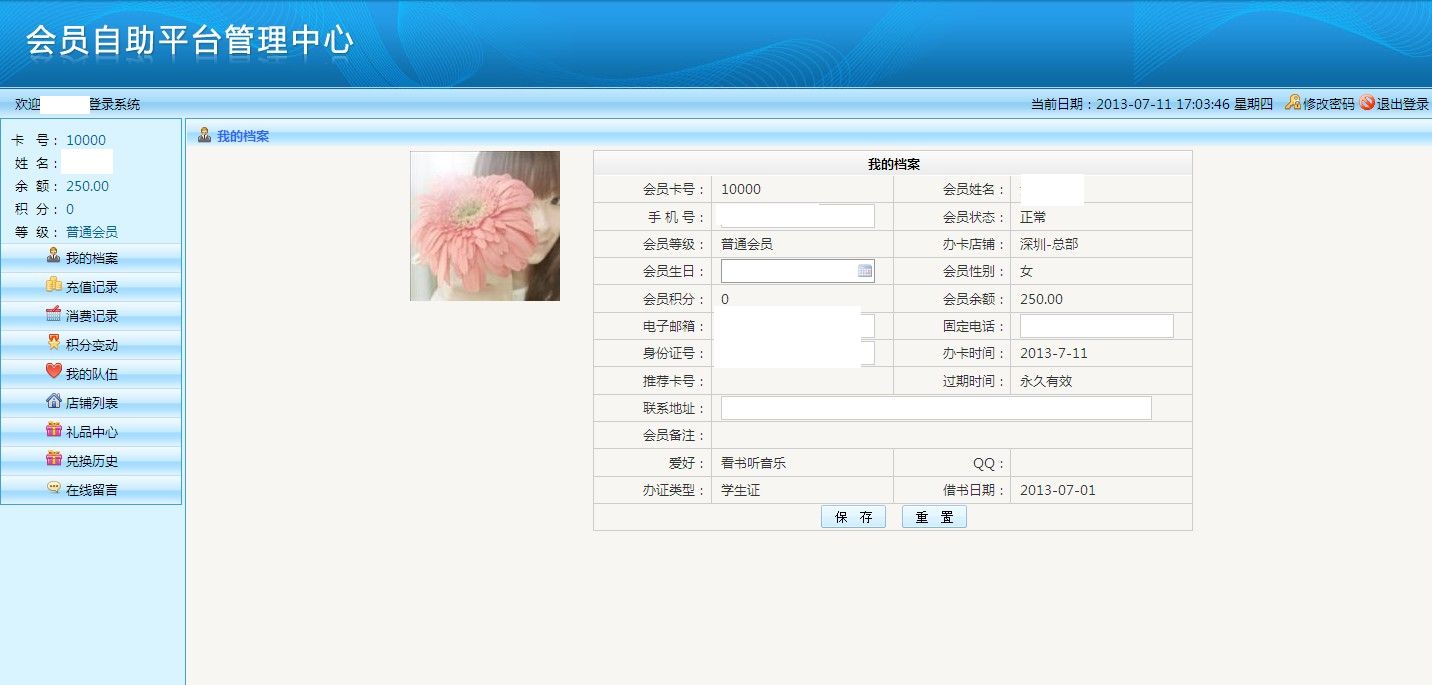 -> 五通一卡通云會(huì)員管理系統(tǒng)我的檔案